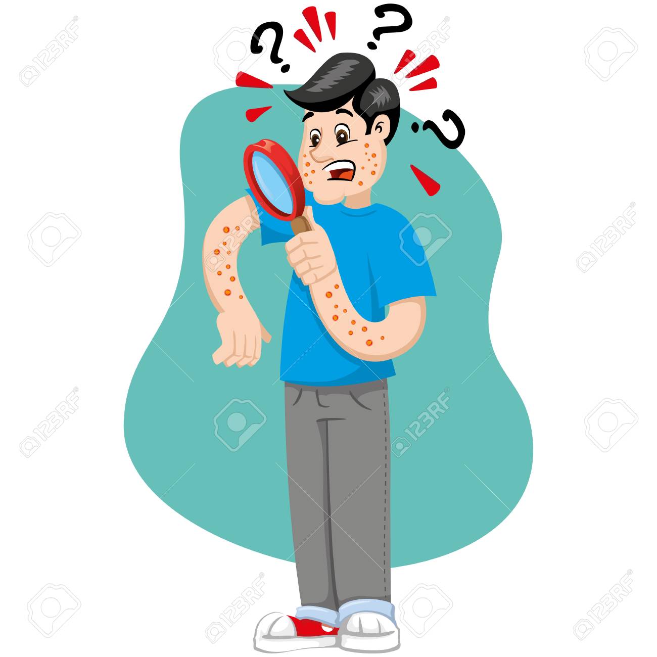 mascot bob man person with allergy rashes and dermatitis symptom royalty free cliparts vectors and stock illustration image 89962614