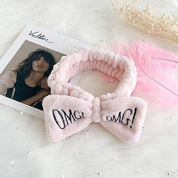 cfadai gesicht waschen stirnband haarbander haar band plusch haar band schreiben stickerei licht rosa schleife waschen sie gesicht haare band haar maske maske yoga haar band amazon de beauty